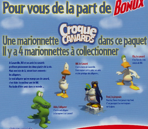 Bonux - Croque Canards Photo de la série complète (extrait de l'emballage). Photo de l'emballage (extrait).