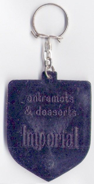 Photos d'un porte-clefs "Pudding Dessert Imperial" (Les blasons sortis de ces portes-clefs ont le verso vierge).