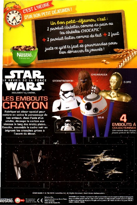 Nestlé - Embouts de crayon Star Wars Chocapic Duo - 2015 Photos de l'emballage (trouvées sur internet).