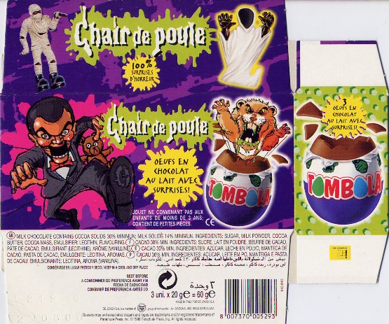 Tombola - Chair de poule Papier de la série. Photo de la série complète des Personnages. Photo de la série complète des Pencil caps. Photo de la série complète des Pocket monsters. Photo de la boite.